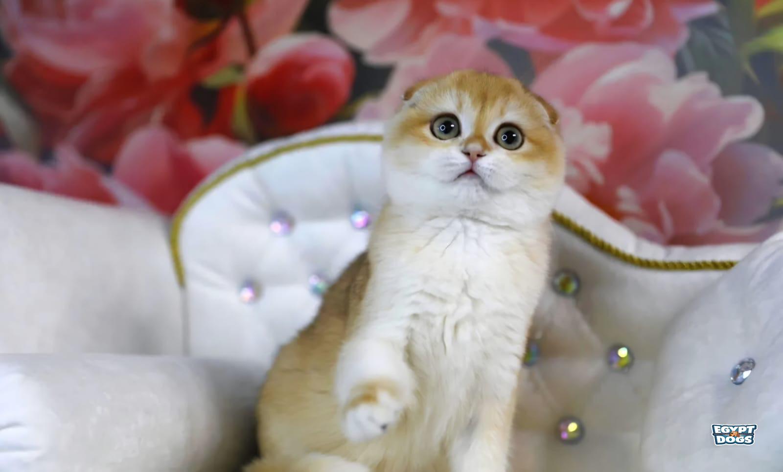 vibrant Scottish Fold female, a rare, precious chocolate golden chinchilla, is available