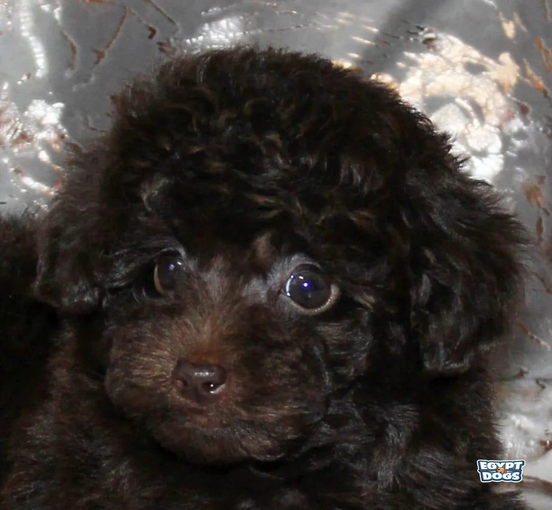 Female toy poodle puppy available. Dark chocolate color. Veterinary passport, first vaccination, and microchip.